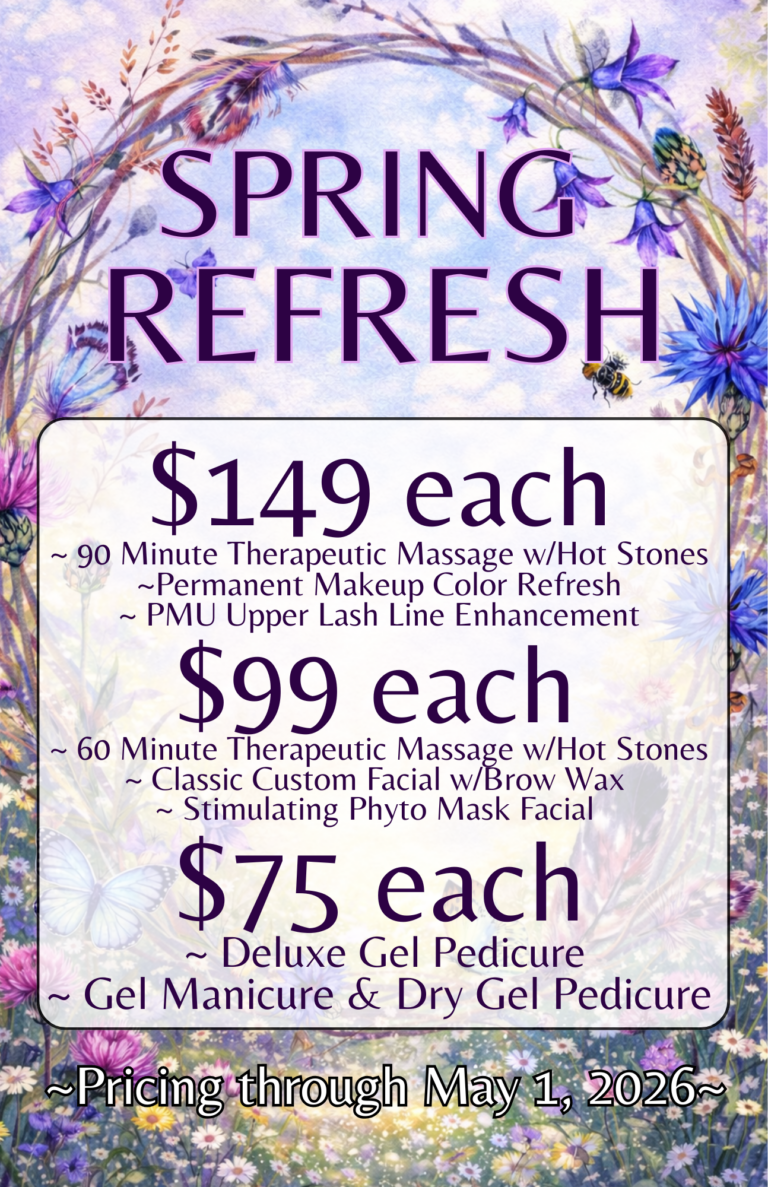 We also offer all of our facial services as a three-series for savings, as well as massage and facial packages and monthly memberships!